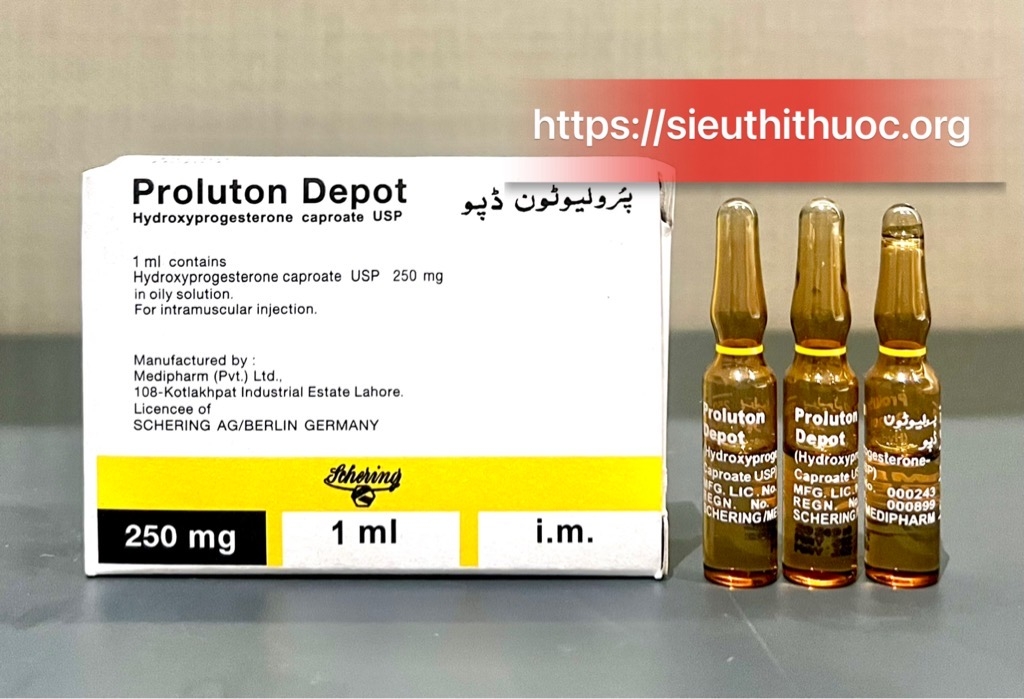- Proluton Depot tiêm 250mg có chứa hydroxyprogesterone, một chất dẫn xuất tổng hợp của hormon sinh dục nữ progesterone, hoạt động theo cách tương tự.